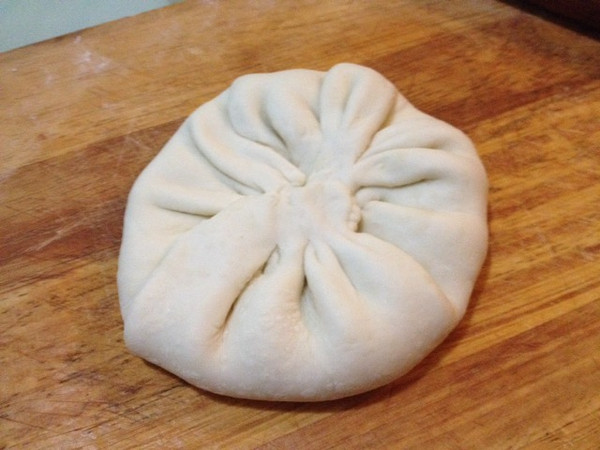 像包包子一样封口。然后用手适当向周围拉伸整理成饼状
