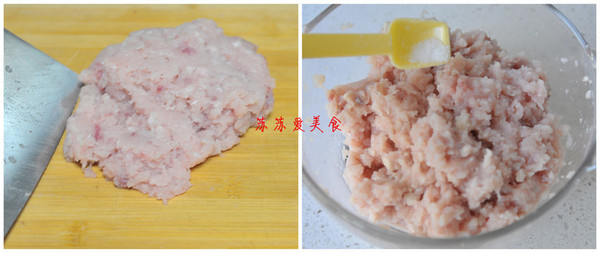 另一条鲤鱼取鱼身去鱼皮,鱼肉剔去剌剁成鱼泥,加入盐。