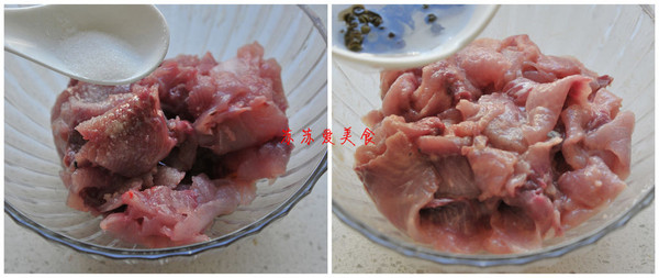 把鱼身去皮片成0.5厘米厚的鱼片,加盐入味。