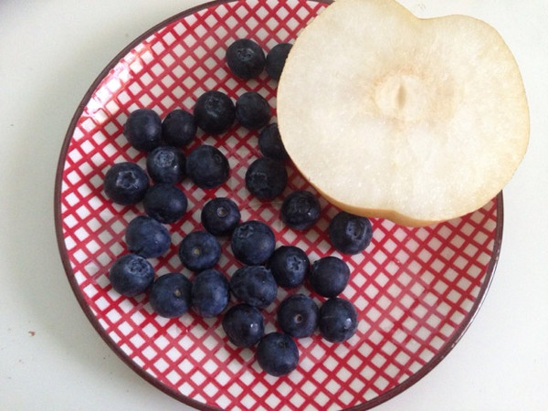 蓝莓洗净并沥干水分,雪梨也洗干净,不用去皮。