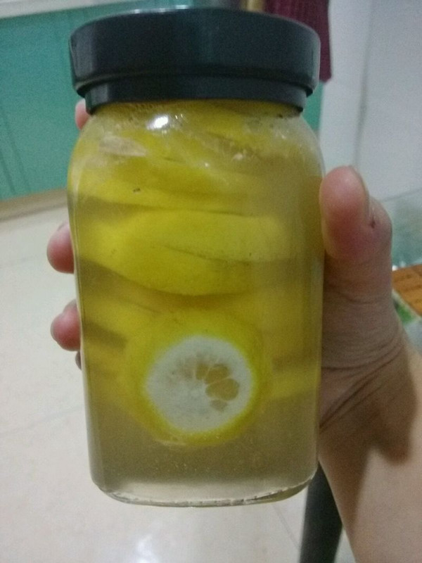 啦啦啦,加入半罐蜂蜜和半罐水!摇匀哦,放到冰箱里第二天就阔以喝啦啦