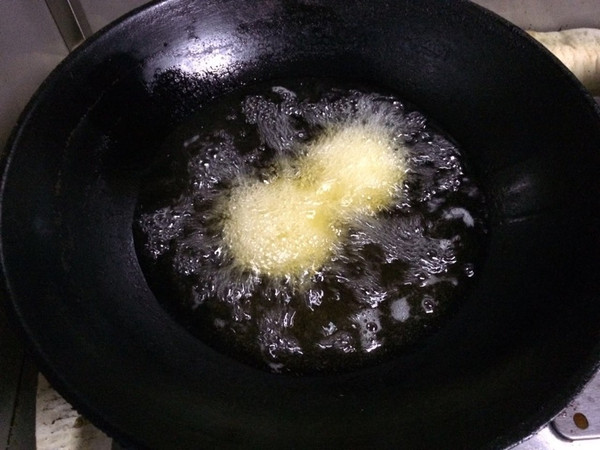 锅中放油,烧热后倒入饼胚,炸至两面金黄即可。