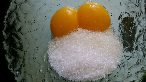 蛋黄加50克白糖,几滴醋打到浅黄色