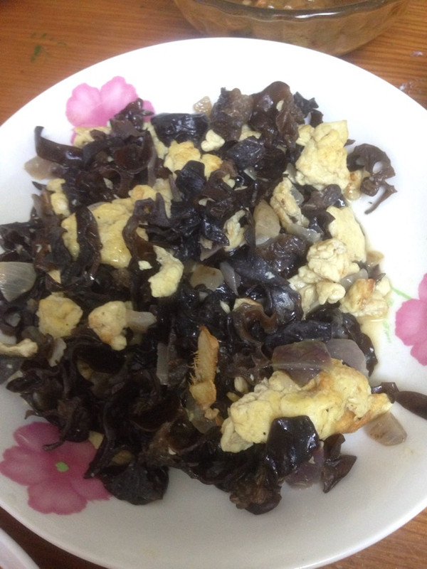 再在锅中倒少许油,加入洋葱,木耳进行翻炒(木耳水分多,当心被油溅)最后加入鸡蛋,并放入适量盐花翻炒,加入适量水再翻炒下即可出锅。非常下饭