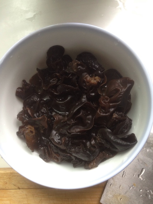 将木耳切成丝,拿出洋葱,取1/4的洋葱