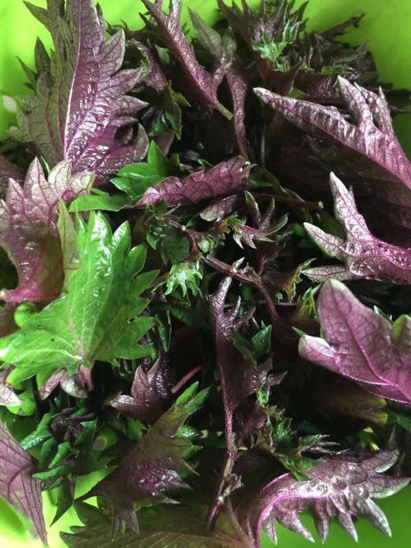 洗净紫苏叶,沥干水份,或用厨房纸吸干备用