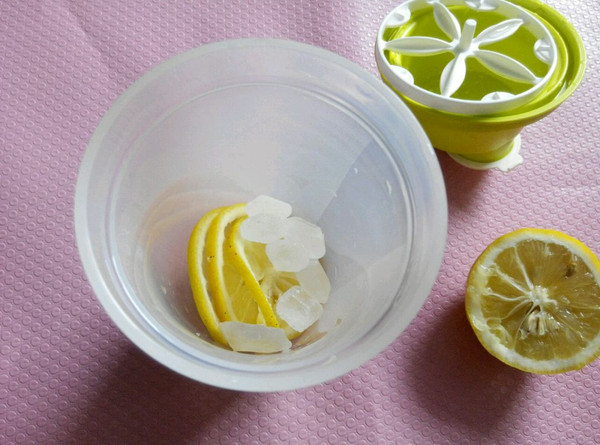 柠檬洗干净,用盐搓一搓,洗净,切片,放入摇摇杯