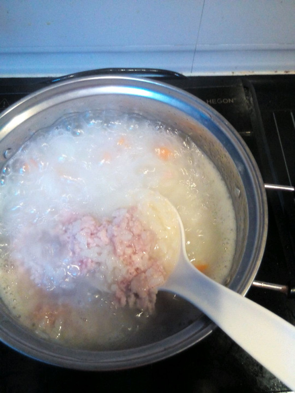 加葱末,加盐,搅拌,继续煮,最后加入少许味精!