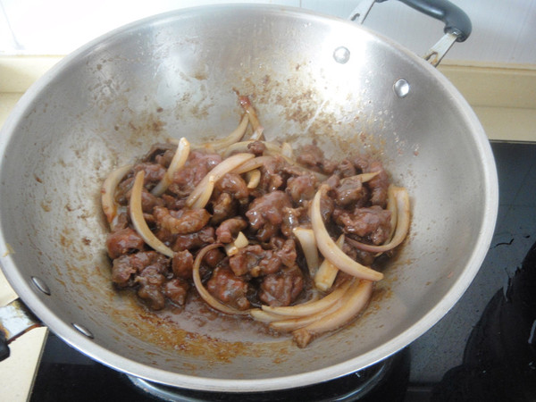 倒入牛肉翻炒均匀后熄火出锅