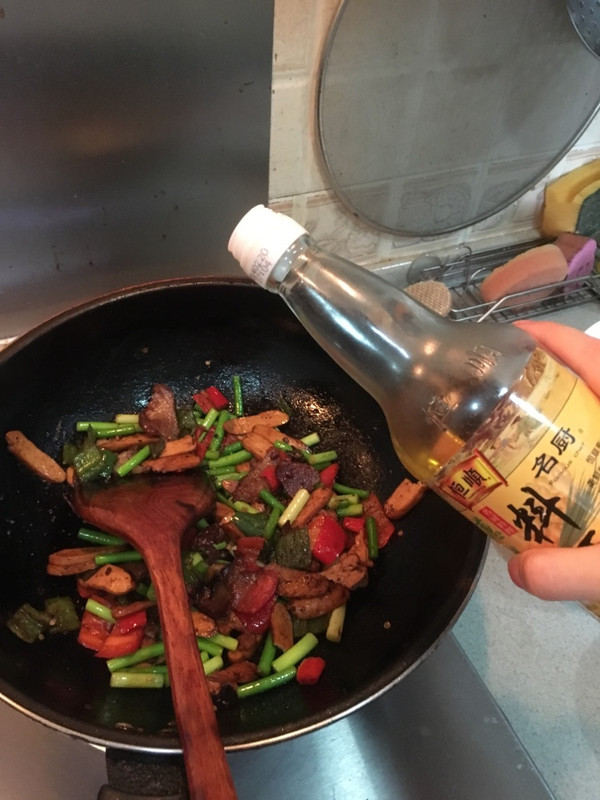 蒜薹一般两分钟就熟了,因为里面有盐辣椒所以可能不用加盐,尝尝味道,出锅前飞一点料酒
