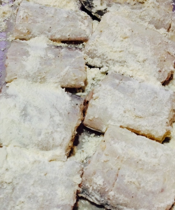 带鱼洗净刮鳞(喜欢可留着),吸干水分!可打花刀、入味,里外挤入少许柠檬汁(或姜里外搽抹),再里外撒入盐、胡椒粉、抹匀,腌制10分钟即可。