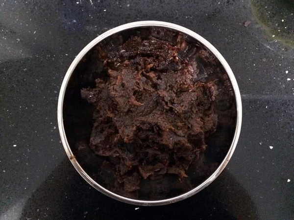 同样放入料理机打成枣泥。因为枣已吸足水份,就不要放水了。