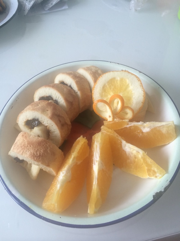 摆盘,水果配面包营养全全全。懒人面包卷上新啦^_^