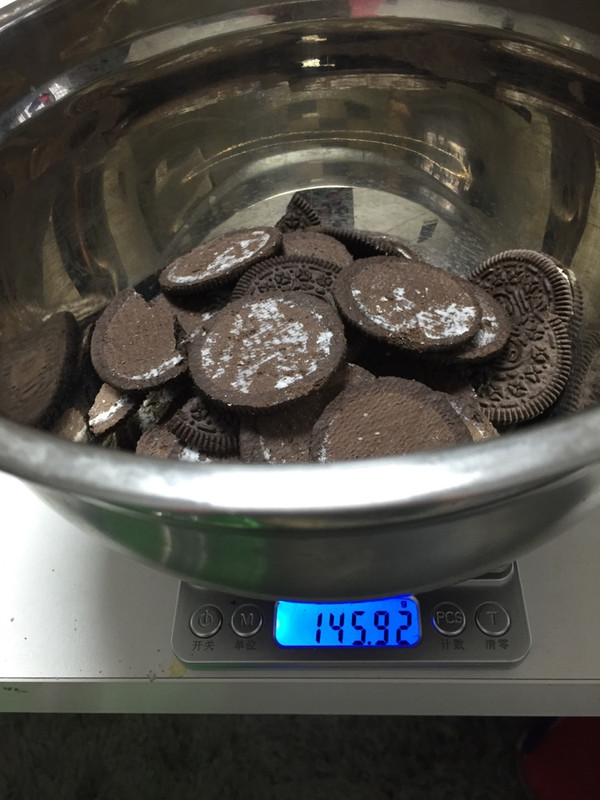 饼干我是去超市买的,自己去了奶油,然后用擀面棍敲碎的