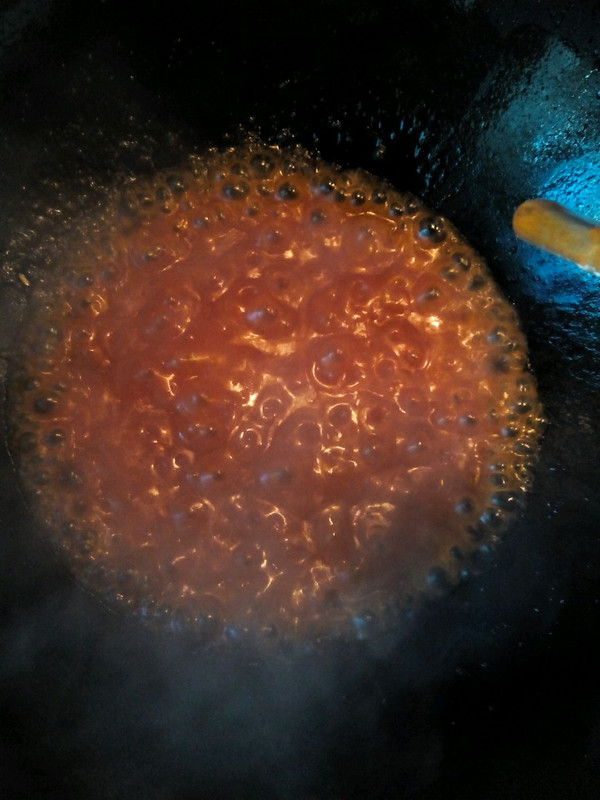 锅内留少量底油,把调好的汤汁倒入,煮至浓稠,汤汁内有淀粉,易浓稠!