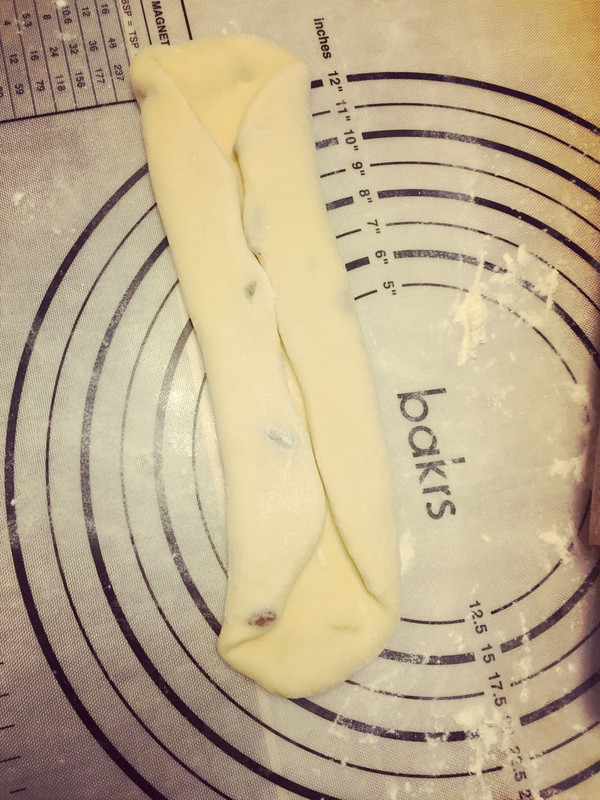 如图折叠,然后卷起来,放入烤模具