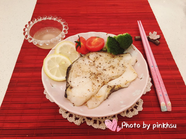 银鳕鱼饮用水冲洗后用纸吸干水分,然后撒上黑胡椒粉和盐腌制 静待10分钟