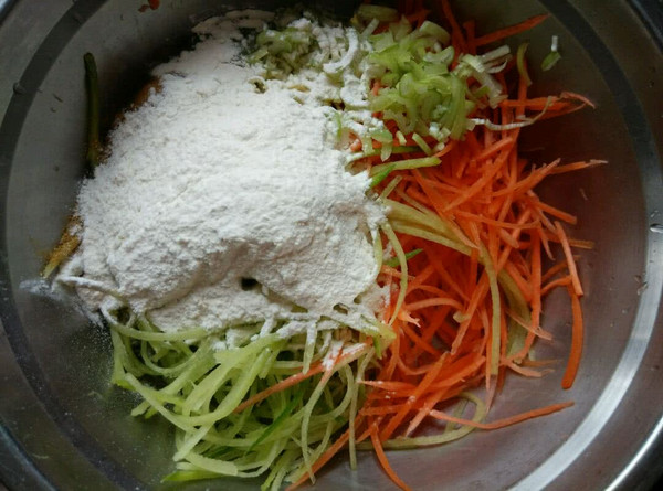 加入一个鸡蛋,适量的面粉,盐和十三香,在加一点点水,不要多,多了很稀就不成形了,搅拌均匀成糊状。