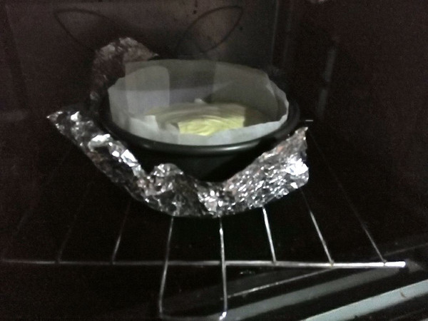 烤箱提前5分钟预热,水浴隔层法,140度,40分钟左右。(中间上色加盖锡纸)