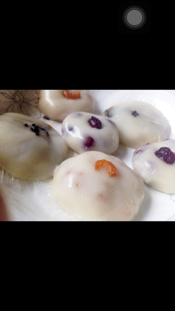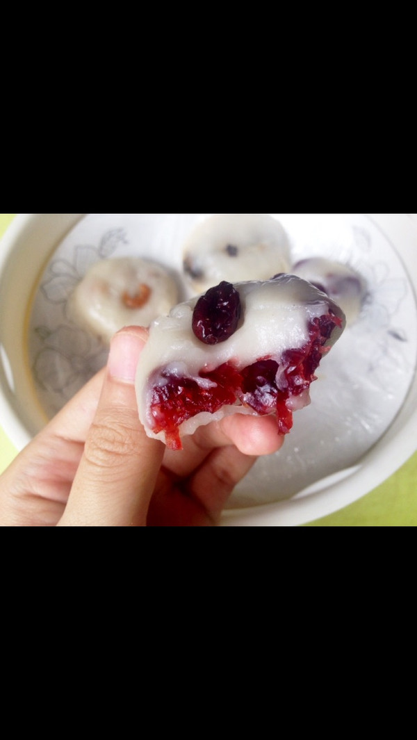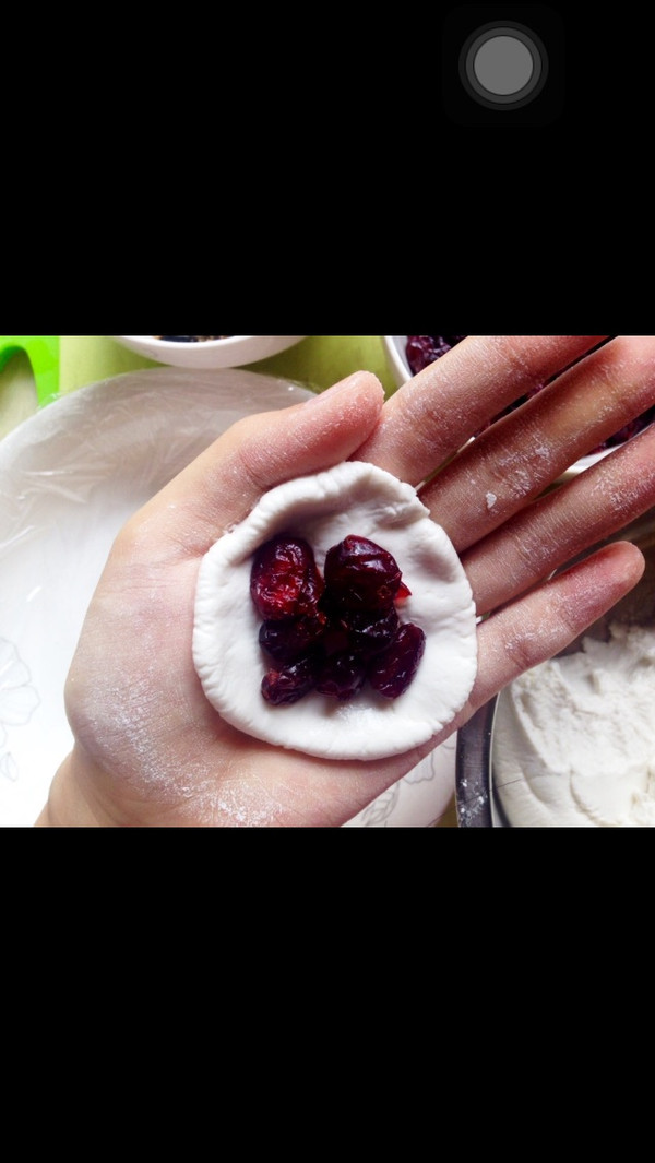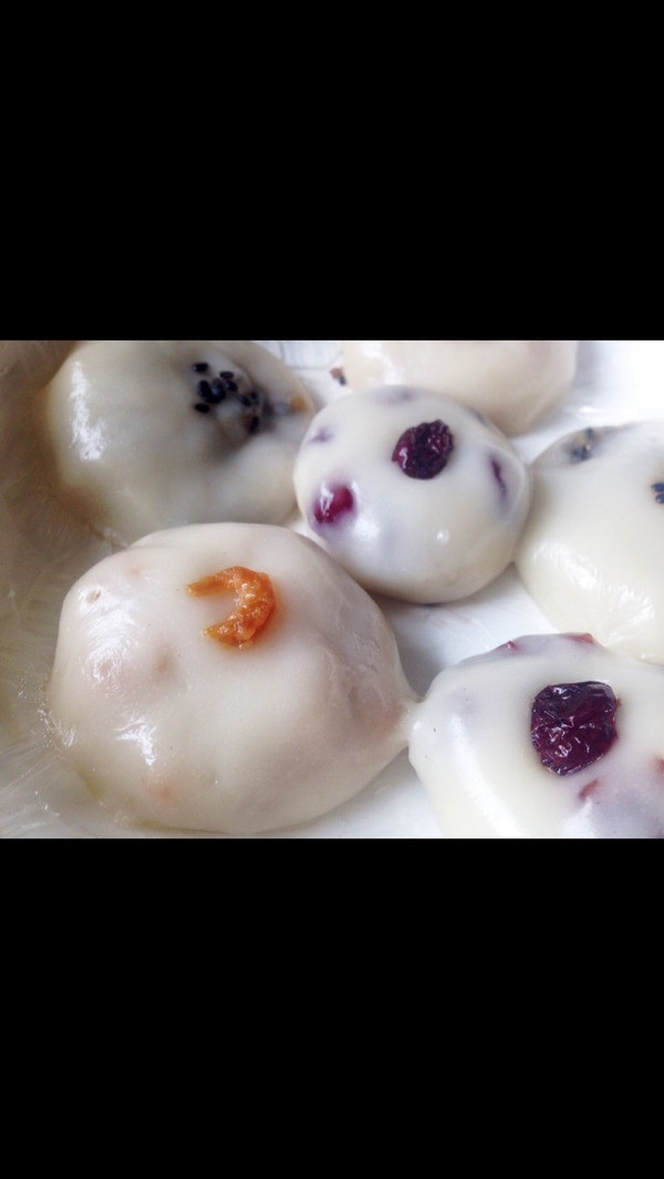 内包材料:炒过的小虾米,蔓越莓,黑糖拌炒过的芝麻