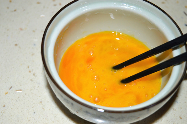 将鸡蛋打入碗中,用筷子打散;