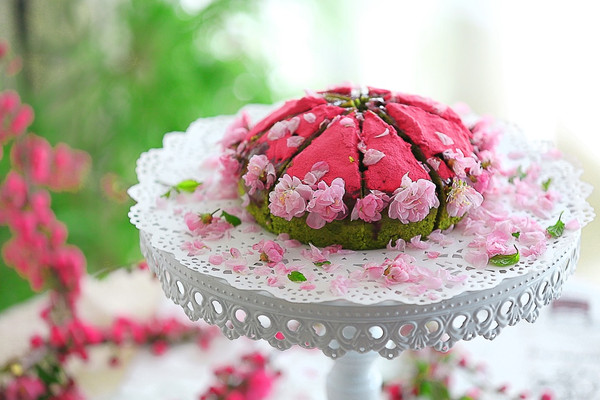 做好啦,脱模,表面撒一层蔓越莓粉,厚一些