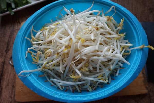 豆芽菜用清水浸泡后控水备用。