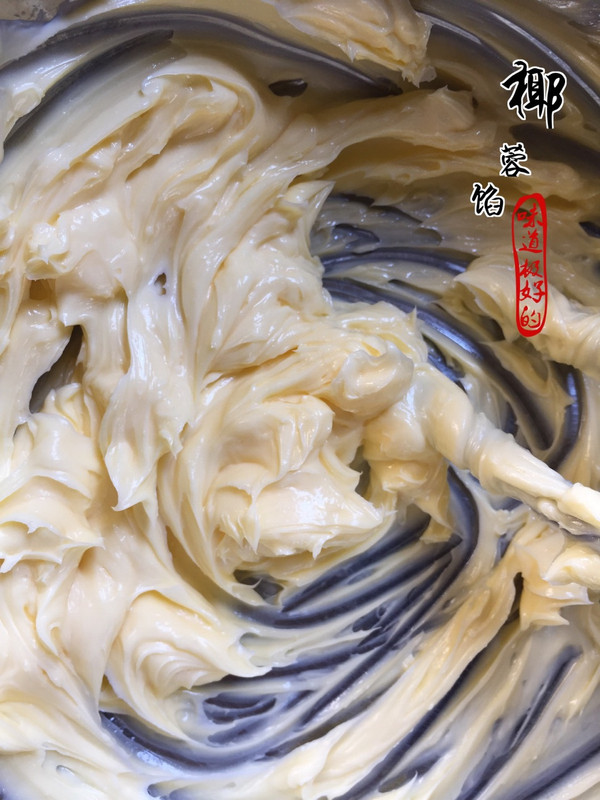 首先先将软化的黄油打至柔滑