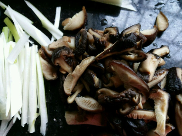 7.另起个锅,倒点炒菌菇锅里油,放入葱丝.姜丝.八角.桂皮.干辣椒一起偏香。