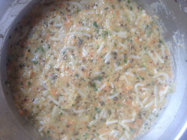 再将鱼肉放进去(这个是之前煮好剔下来的肉和汤放冰箱冻起来了,用的时候掰一些下来,剔肉的时候要小心不要有鱼刺卡到宝宝)