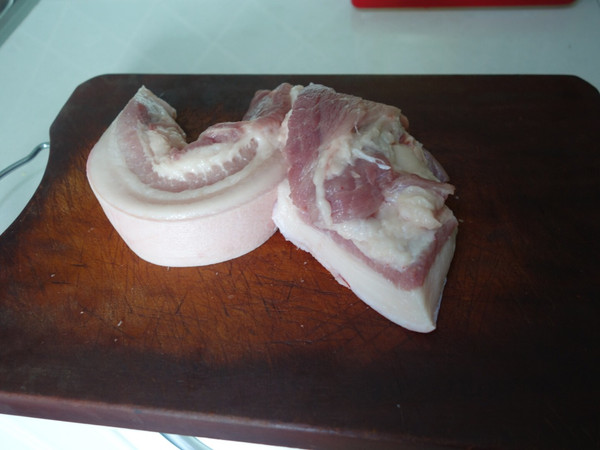 五花肉与瘦一点的前腿肉各一块,肥瘦三七开。也可以用纯五花肉和纯前腿肉,看个人喜欢。