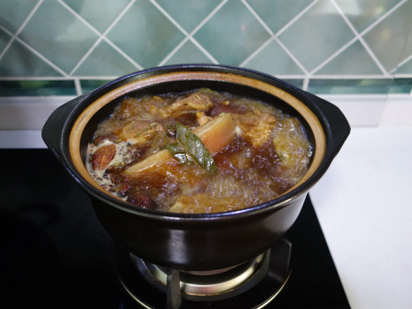 锅里烧水,连肉带腌料和汁水,统统放入锅里,再加一些红烧酱油、料酒、盐、冰糖、八角、草果、小茴香、桂皮、丁香、干橘皮、香叶、三奈。