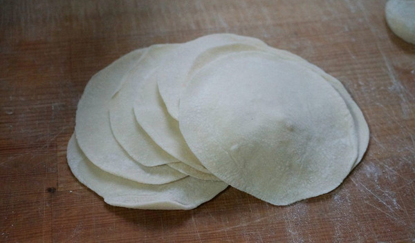 取适量的馅放在皮上,按照自己喜欢的手法或包或挤成饺子
