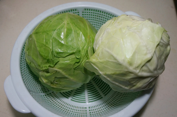 将圆白菜切丝,再改刀切碎,撒盐拌匀,静置10分钟左右后,用手攥出多余的菜汁
