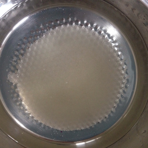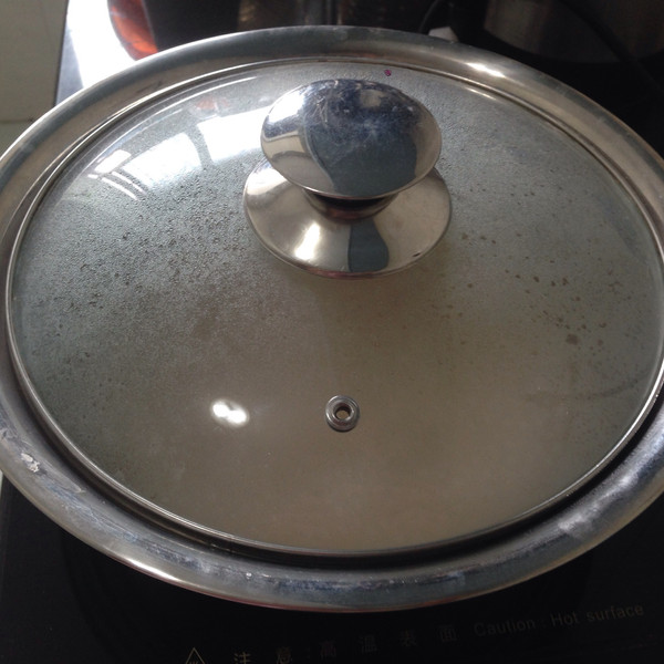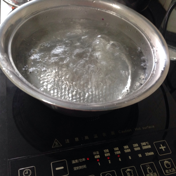 将600g水和100g白砂糖倒在锅里,煮开后成糖水