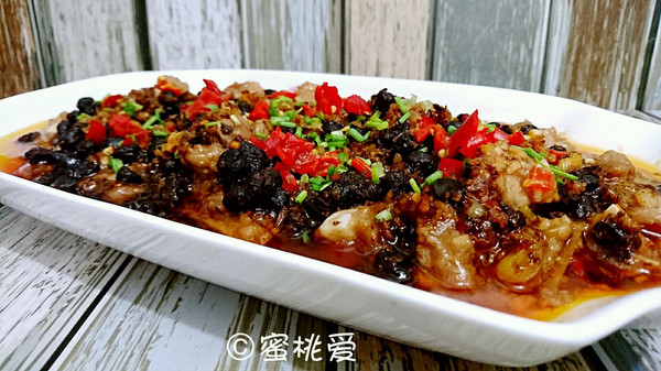 蒸好,出炉,香气扑鼻。撒上小香葱,剁辣椒,点缀。 我的豆豉不是很咸的,所以看起来多,如果你们的豆豉很咸,请你们根据自己豆豉咸度来酌情放。