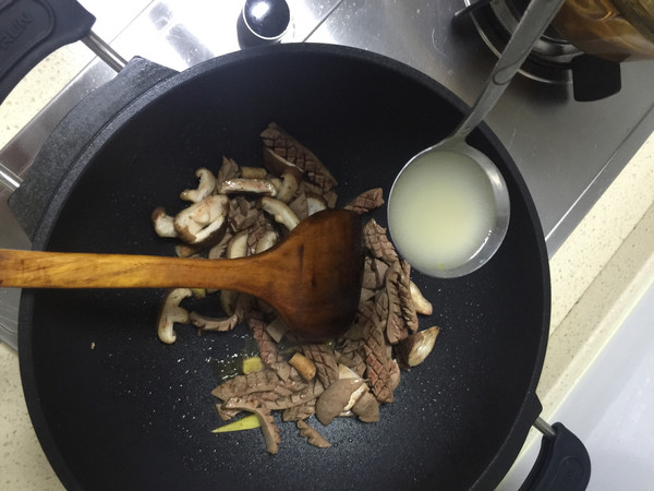 颠两下锅,加一勺高汤。我这里用的淡鸡汤,加入适量的盐,再加一点点老抽,就可以出锅了。