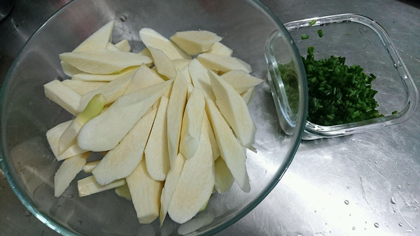 加入热水,淹没一半的茭白就够了,尝一下味道,酌情放盐。