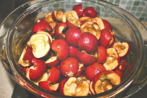 去核后的山楂上锅蒸,大概20分钟蒸到熟透软化状态。