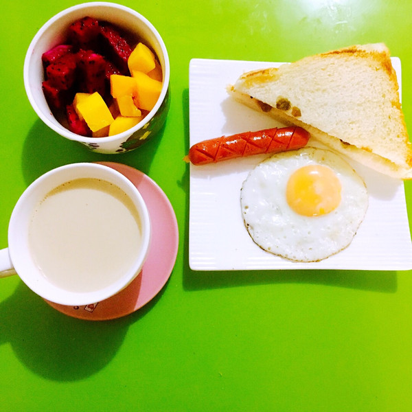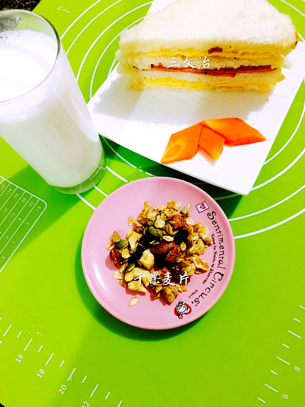 干果麦片牛奶+蒸鸡蛋+包子和蒸饺