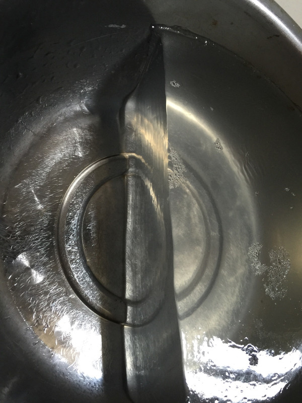 煮好的白凉粉,冷却后即成膏状了!(如果急着吃,可以把盆子放在冷水里浸凉!)