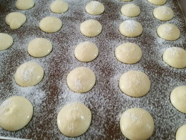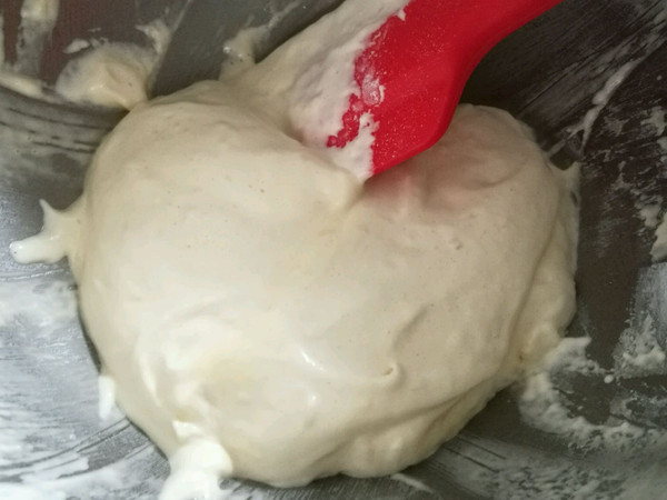 筛入低粉,翻拌成糊状,同时烤箱预热,上下火l70度