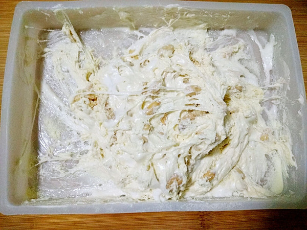 搅拌均匀。如果搅拌过程中出现凝固,就再放进微波炉里转15秒左右,拿出继续搅拌。将搅拌均匀的糖糖压平至饼状,放进冰箱冷藏室。