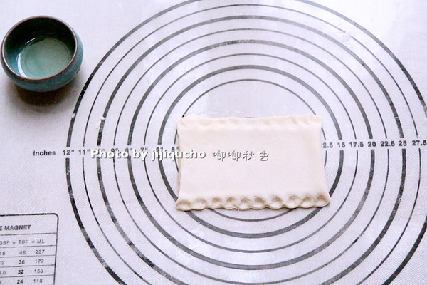 将面皮对折,边缘用手压一下,这样边缘不容易开口