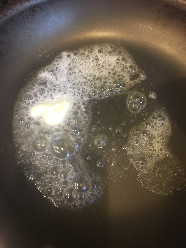 小火放入黄油,不要大火哦不然一下黄油就变色了