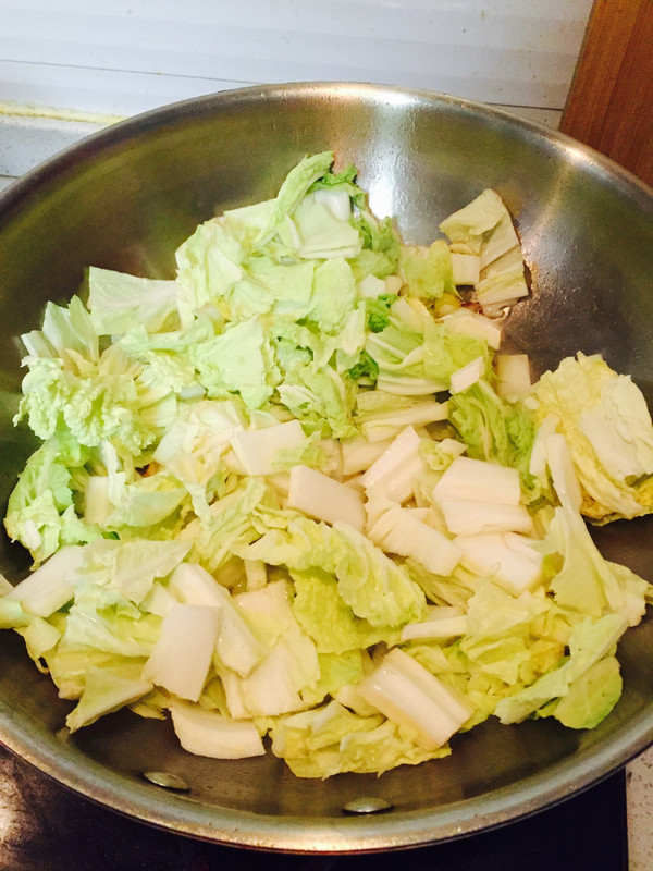 葱花炒香味出来后 放入白菜片翻炒
