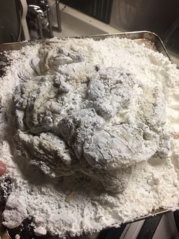 放入裹好粉的蠔,不要动,让它煮,煮到蠔都翻动漂起来了,就好了