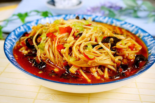 这个菜不要收汁太干,金针菇做的菜,一定有些汤汁才好吃,拌饭的话,就更需要来几勺鱼香汤汁了,您说是不是?
