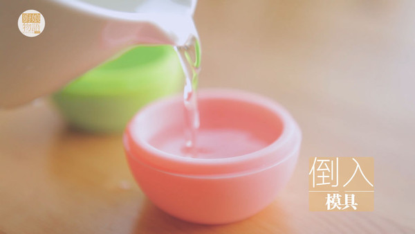 盖上模具的盖子,再用漏斗把白凉粉液体倒满模具。(这时候里面就是一颗圆圆的球啦~)