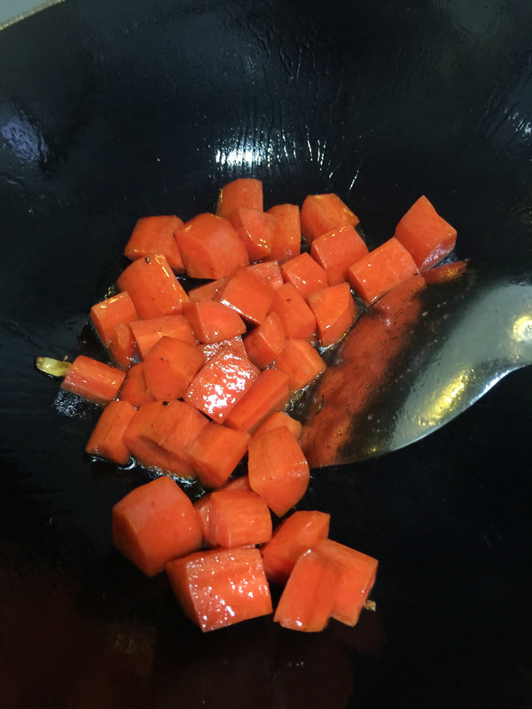 小火煮到四十分钟后加入过油的板栗和胡萝卜,翻匀后继续小火炖煮。